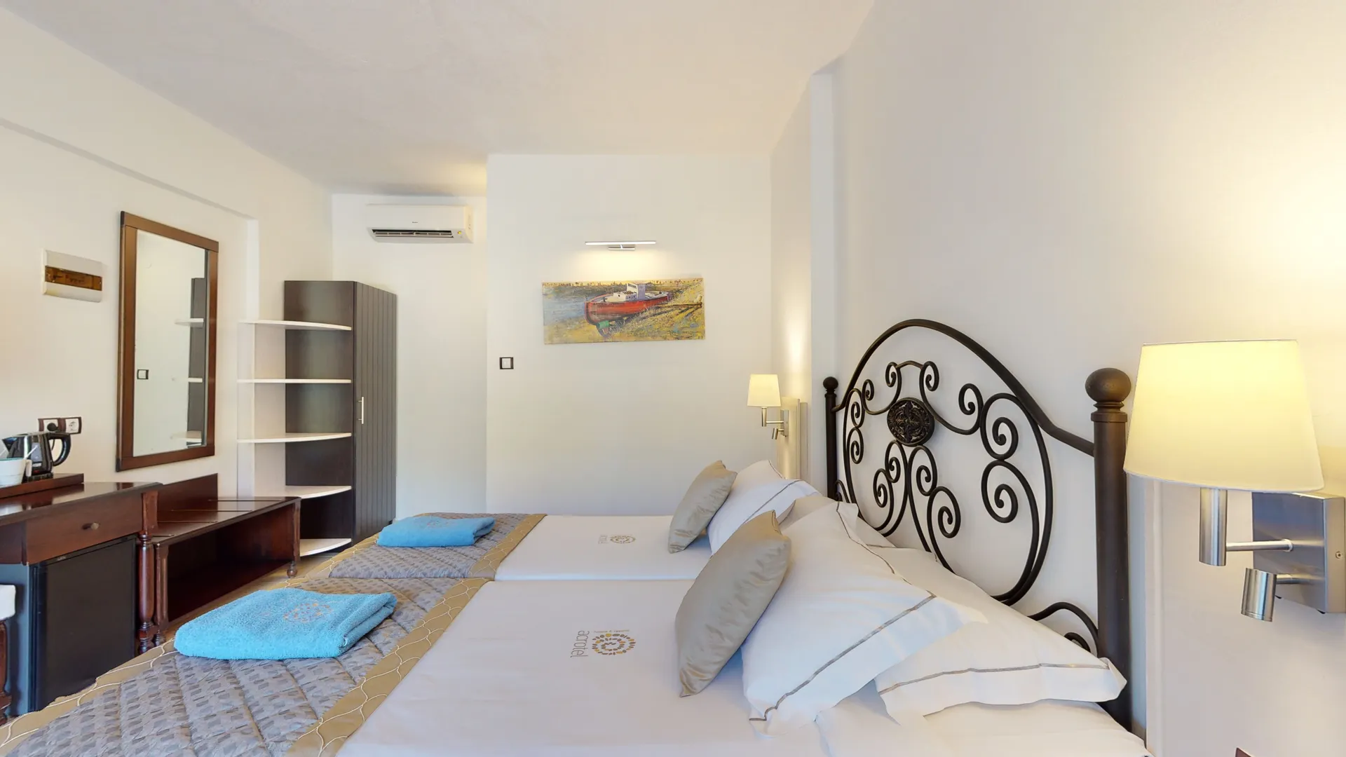 The Family Suite is an excellent choice for families or groups of up to five guests seeking a comfortable and spacious accommodation option. The suite is situated on the ground floor, offering easy access to the hotel’s facilities and the surrounding area. The suite includes a separate space with two single beds and a bedroom with one double bed, ensuring that everyone has their own space and privacy.