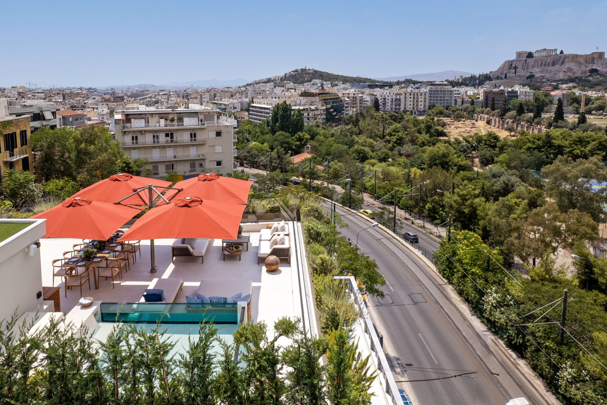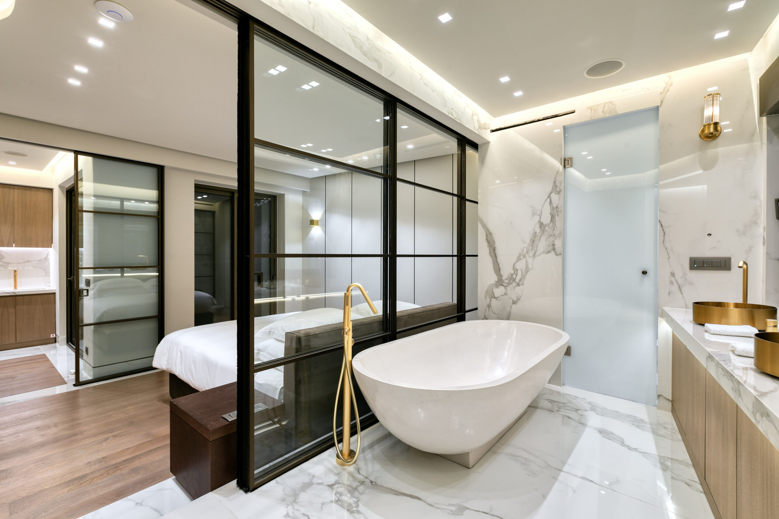 One of the highlights of this suite is the 15 sqm private courtyard accessible through the sliding glass doors, offering a tranquil outdoor space to unwind.