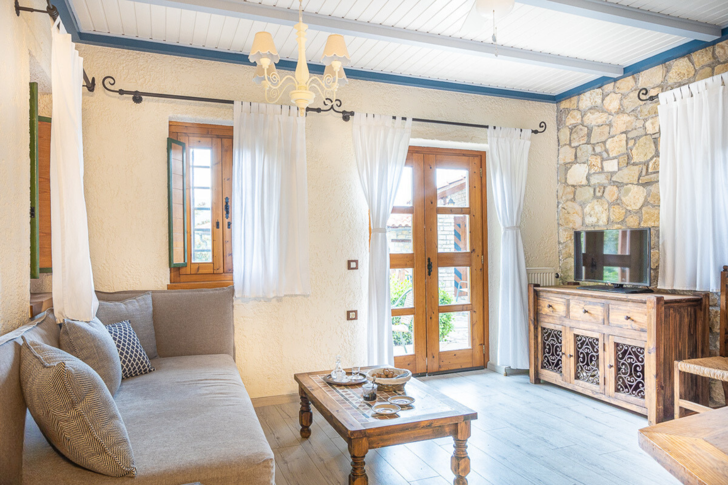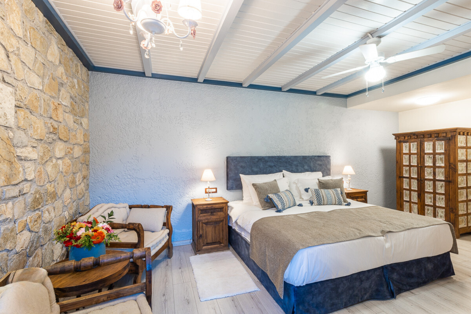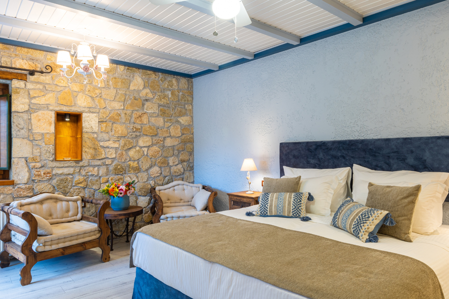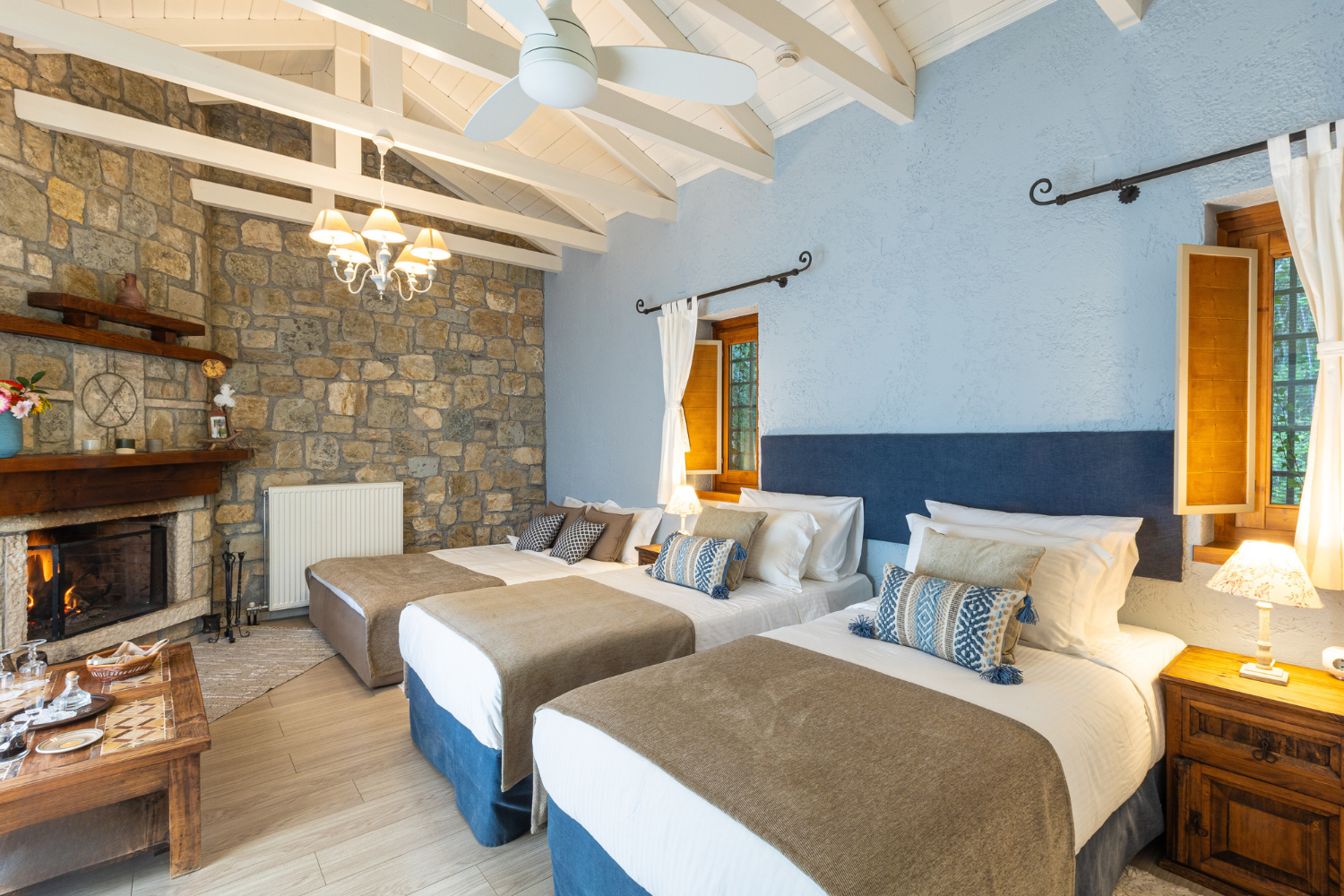 Abeliona Retreat introduces 22 spacious rooms, embodying the traditional Arcadian style with 13 Junior Suites and 9 Family Suites, each featuring fireplaces and contemporary conveniences like Wi-Fi and premium bath amenities. The interiors radiate elegance, adorned with fine antiques and classical fabrics. The seamless fusion of traditional decor with a subtle modern touch reflects a sophisticated upper-quality aesthetic, showcasing meticulous craftsmanship and attention to detail. These accommodations metamorphose into personalized havens.