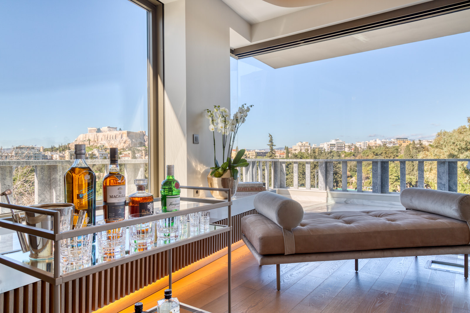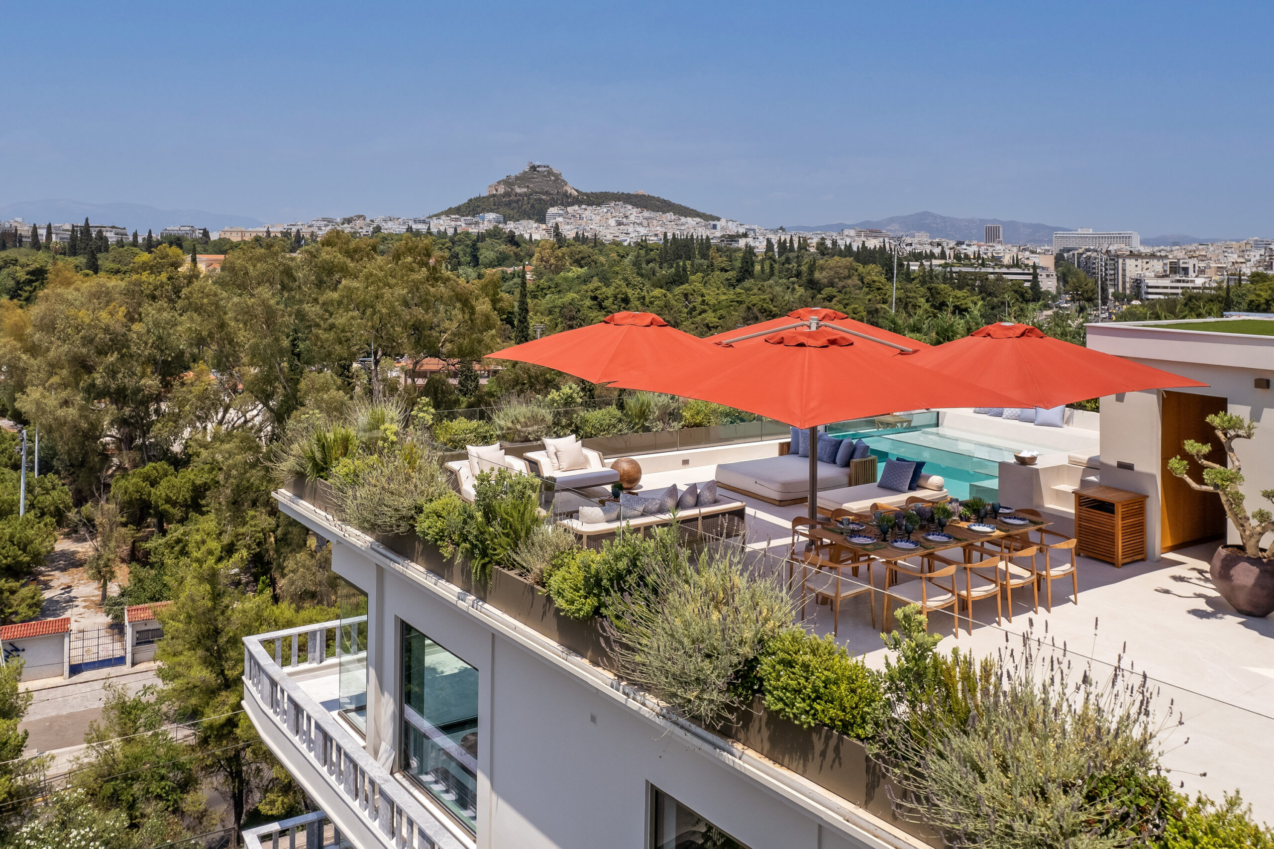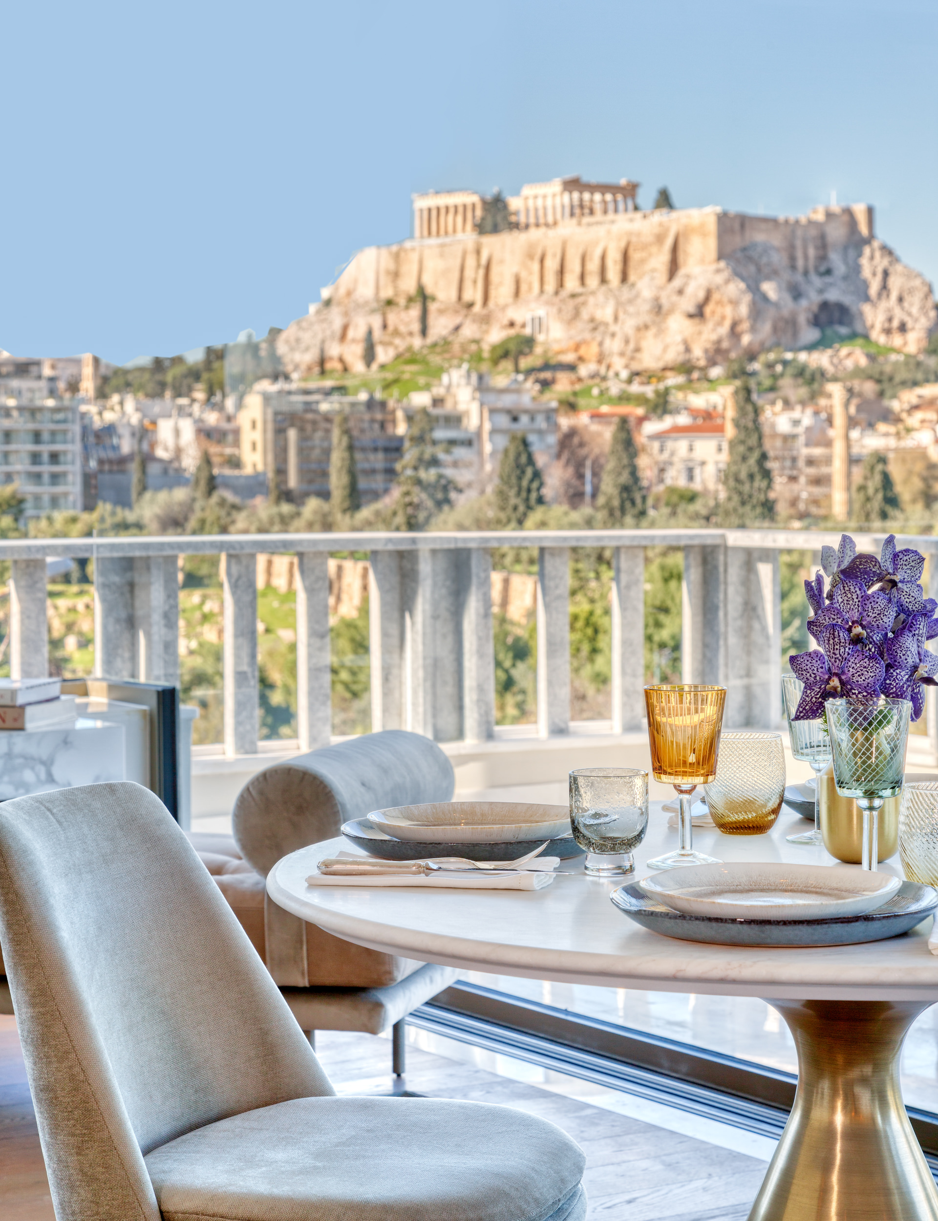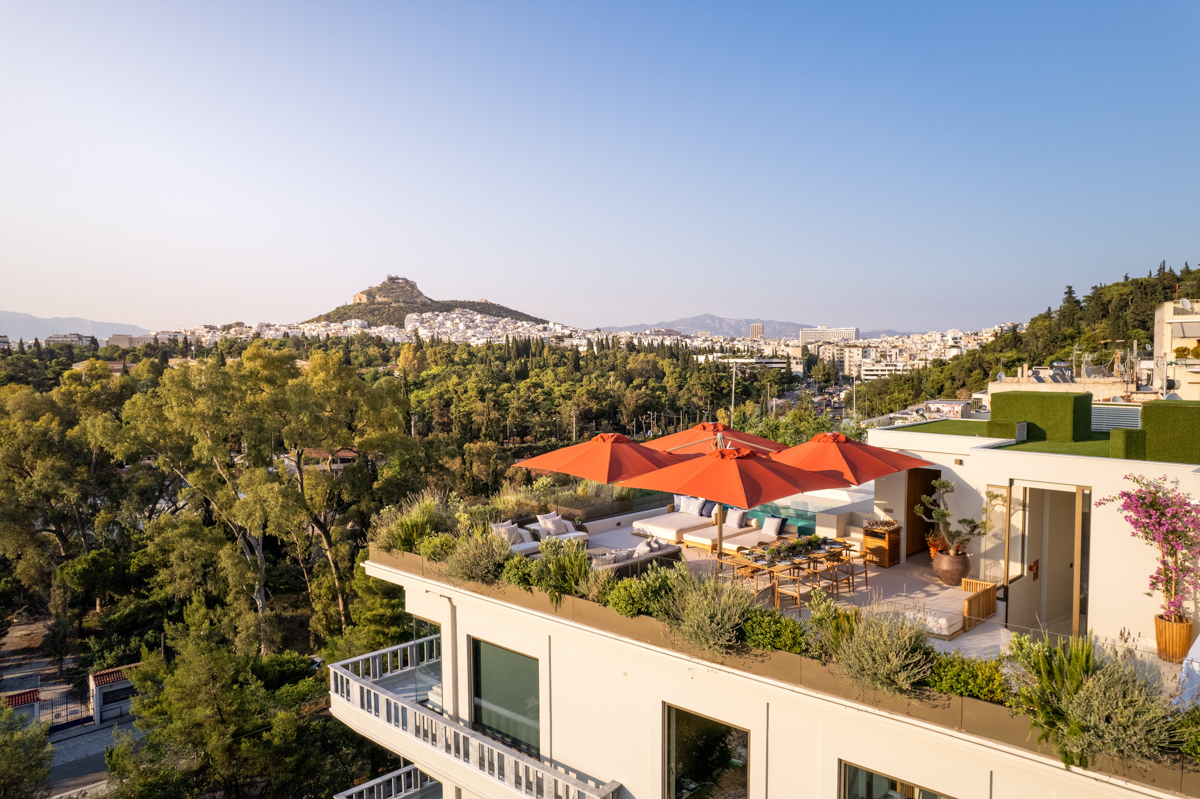 The Athena Penthouse, located on the top floor of the One Acropolis Hotel, boasts exceptional views of various landmarks including the Acropolis, Mount Lycabettus, the Temple of Olympian Zeus, and the National Garden. The Penthouse, which is named after the ancient Greek Goddess Athena, is known for her wisdom, handicraft, and warfare, and is recognized for her connection with Athens and the Parthenon on the Acropolis.