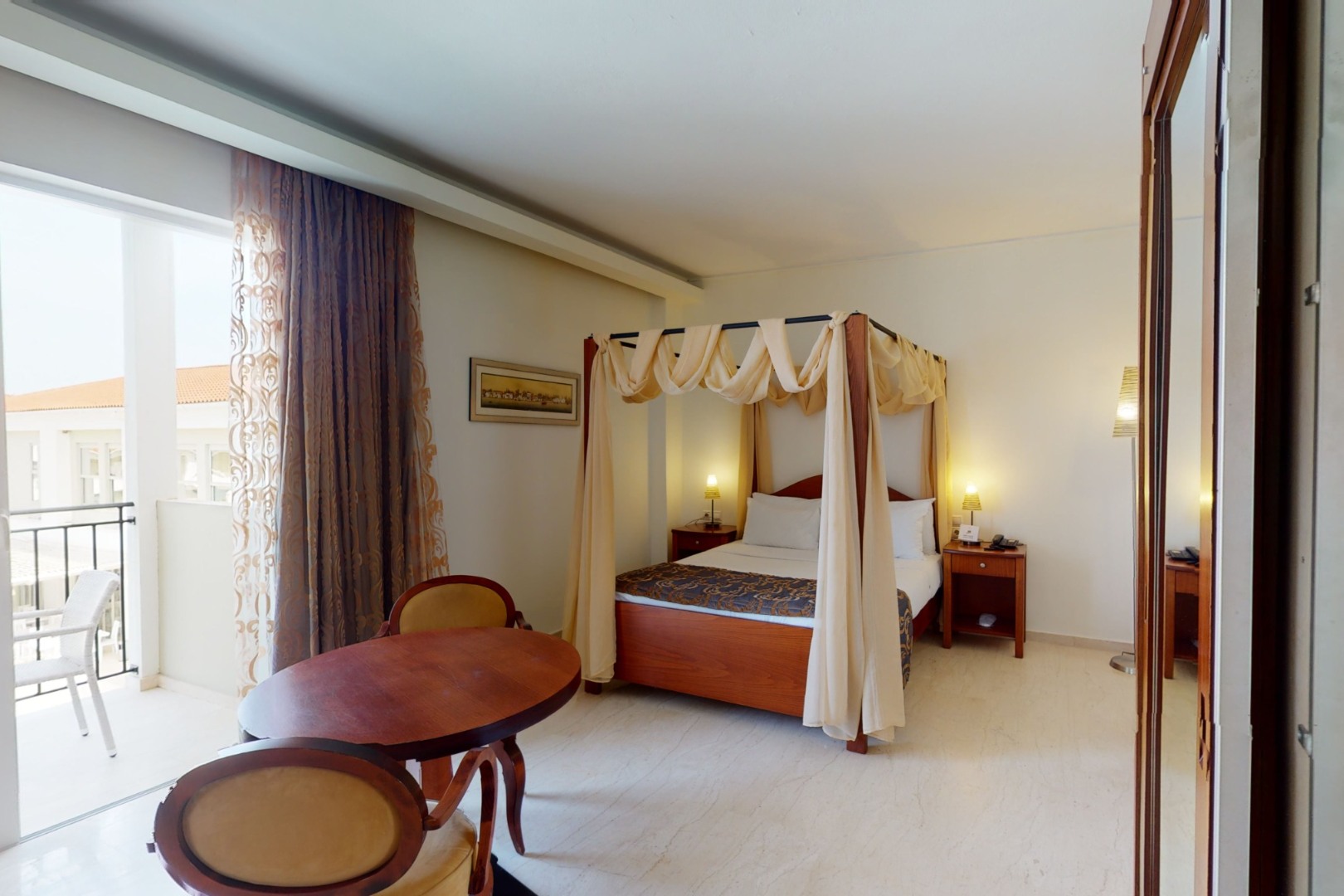 action or later. Please see Debugging in WordPress for more information. (This message was added in version 6.7.0.) in /var/www/vhosts/thevivestia.com/staging.thevivestia.com/wp-includes/functions.php on line 6121Deluxe Room is perfect for those who desire luxury and comfort combined with intimacy. These contemporary and spacious rooms are 25-35m2 and have been designed to meet high-quality standards that will make your stay both pleasant and memorable. The room features an imposing four-poster QUEEN or KING size bed that will surely make your sleeping experience unforgettable. There is also a furnished balcony or terrace which provides a stunning view of either the garden or the pool.