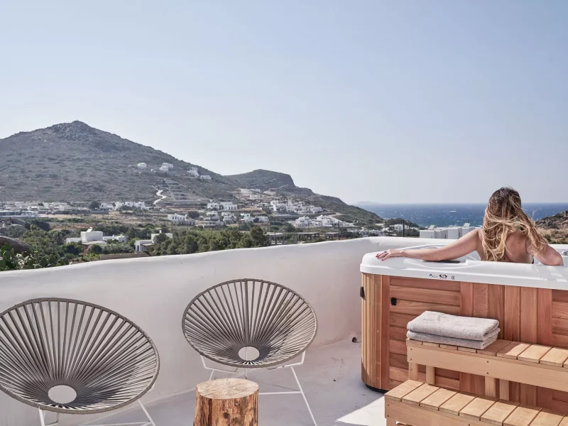 Naxian Utopia also features a beautiful outdoor swimming pool, surrounded by lush gardens and offering breathtaking views of the surrounding mountains and the Aegean Sea. The pool is the perfect spot for guests to soak up the sun and enjoy a refreshing swim, while the poolside bar serves up a range of refreshing drinks and light bites.