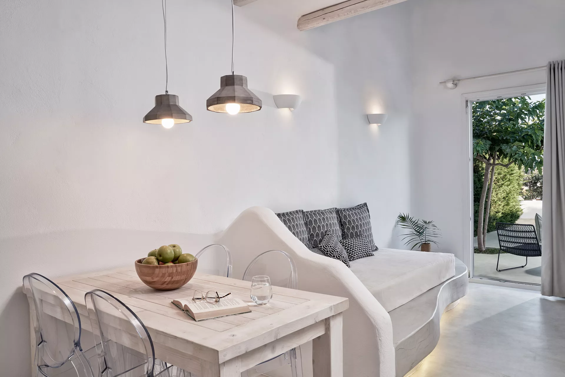 The hotel features 12 well-appointed suites, each thoughtfully designed to provide guests with the utmost comfort and privacy. The suites are decorated with minimalistic yet elegant furnishings, and each comes equipped with a range of modern amenities such as air conditioning, flat-screen TV, a mini bar, and a private balcony or terrace with stunning views of the surrounding landscape.
