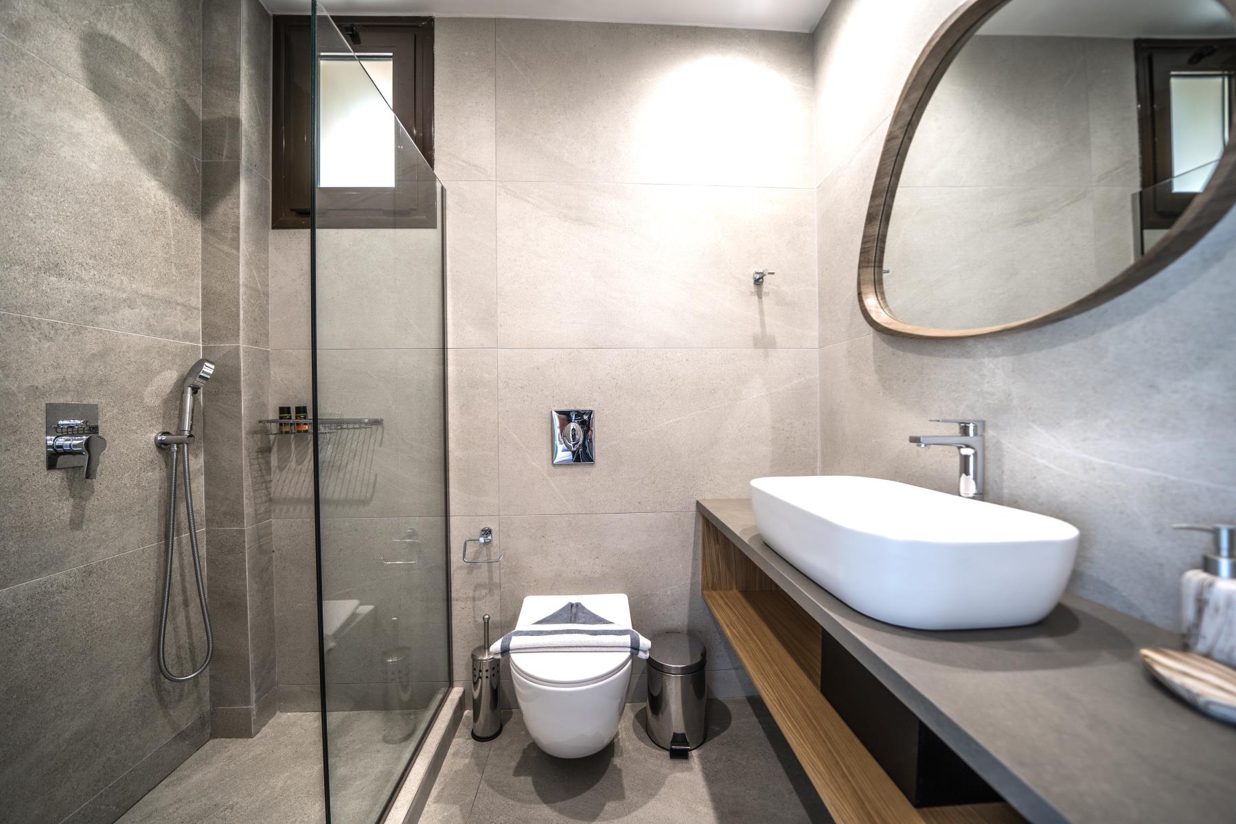 The outdoor space of Lycea Suite is truly mesmerizing, with a beautiful swimming pool that overlooks the sea and the surrounding countryside. It’s the perfect spot to enjoy the tranquil surroundings and soak up the sun. The suite is also surrounded by lush greenery and colorful flowers, creating a peaceful ambiance that will make guests feel at home.