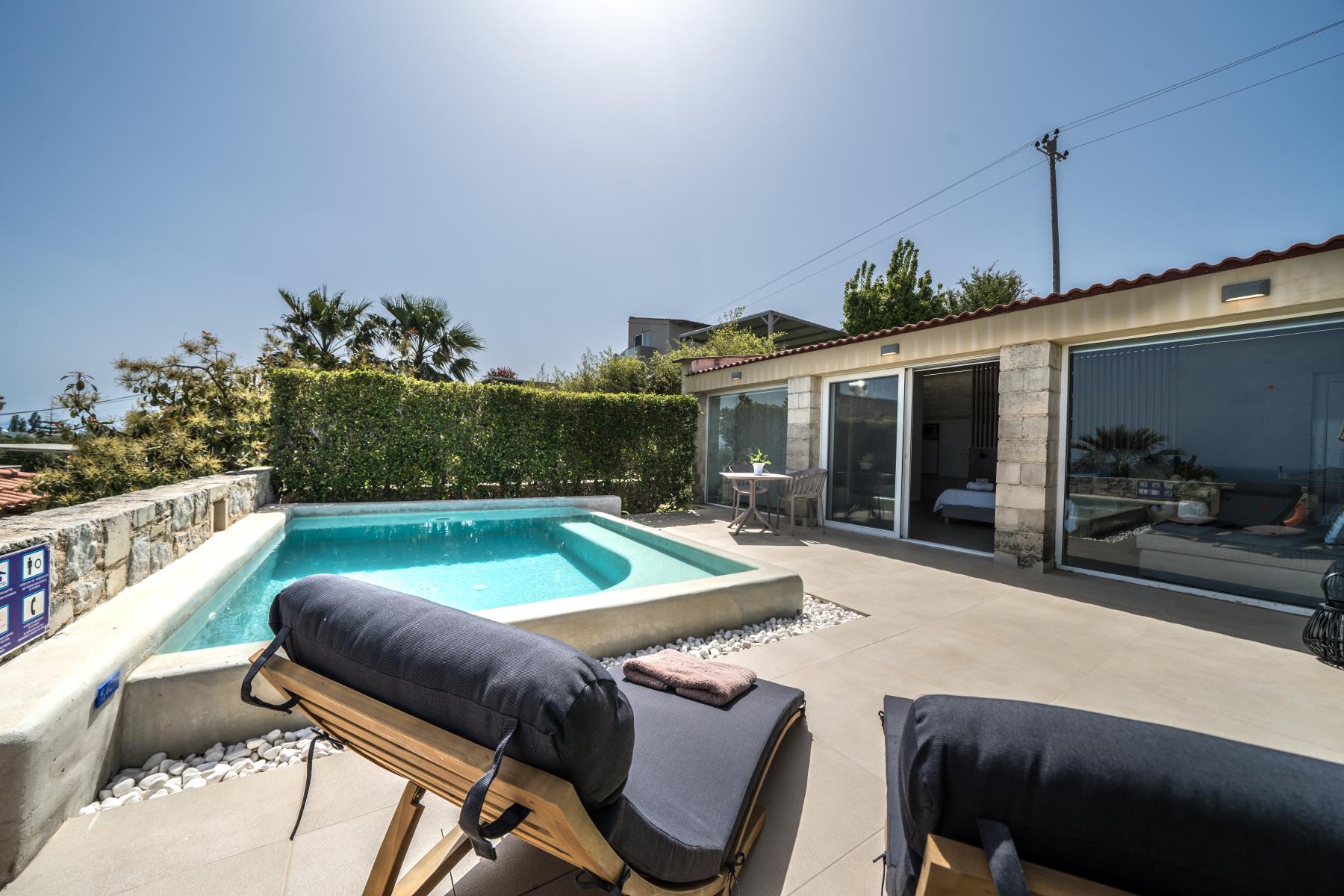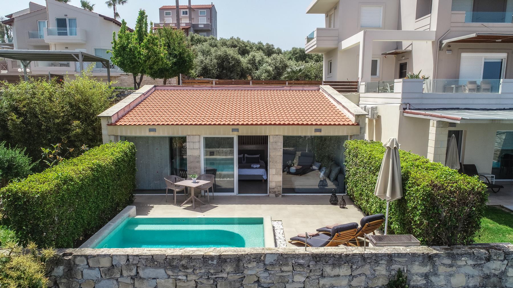 action or later. Please see Debugging in WordPress for more information. (This message was added in version 6.7.0.) in /var/www/vhosts/thevivestia.com/staging.thevivestia.com/wp-includes/functions.php on line 6121Lycea Suite is a small luxury suite that provides the utmost privacy and comfort, making it an ideal choice for couples or small families. With a total area of 45m2, the suite can accommodate up to 3 people, featuring one bedroom, a living room, a kitchenette, and one bathroom. The highlight of this suite is the private pool, which is just a few steps away from the living area.