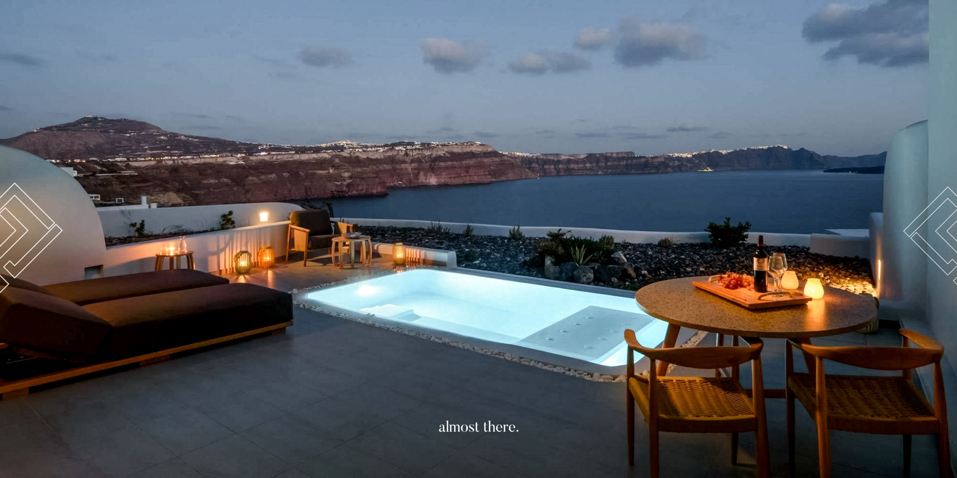 The Suite Grey is located on the very edge of the Caldera, offering a once-in-a-lifetime view of the Caldera and volcanoes. Guests can visit the small volcanic beach located just 500m downhill, an ideal spot for scuba diving. The Akrotiri center is only 5 minutes away by car, where guests can explore the local culture and indulge in delicious cuisine.