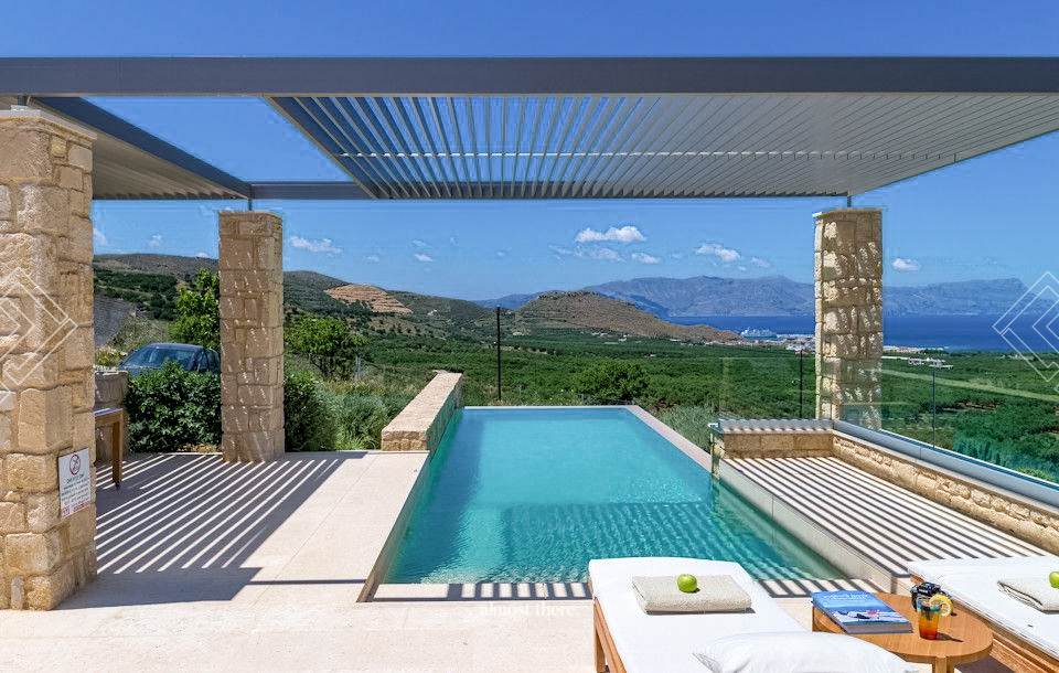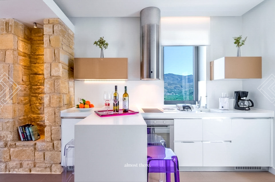 Villa Abyssos is ideal for individuals or families looking for a modern, stylish, and functional living space. The building’s unique architectural design allows for a clear distinction between living and sleeping spaces, providing ample privacy and an uninterrupted sense of space. The villa’s modern features, including the natural stone finishes, provide a luxurious and comfortable living experience. The use of top-of-the-range appliances and materials such as Corian work surfaces enhances the villa’s practicality, making it an ideal living space for those who love to entertain guests.