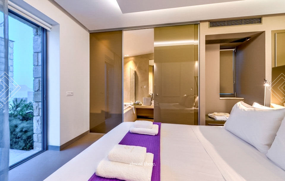 Accessed via a spacious terrace, the master bedroom is designed with an open-plan layout and features an award-winning COCO Mat double bed. The sleeping space is separated from the modern dressing area by a glass partition. The en-suite bathroom is spacious and equipped with a Jacuzzi bath that is positioned to offer stunning sea views through a private picture window.