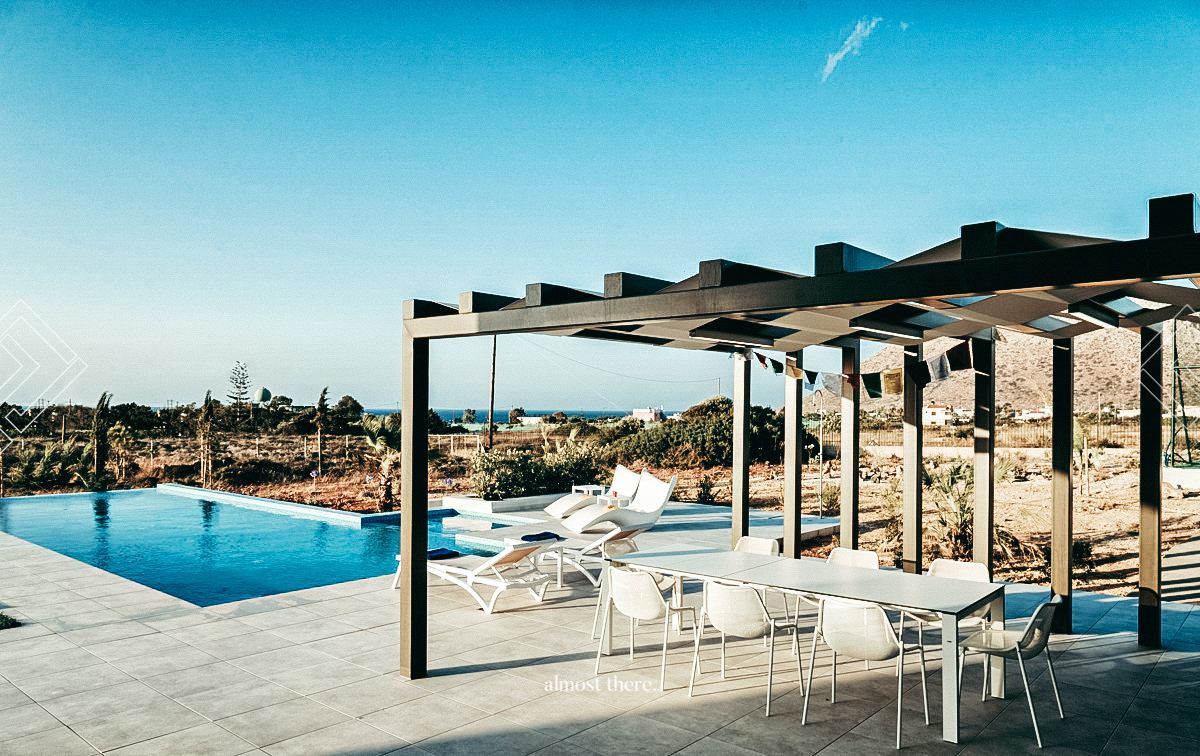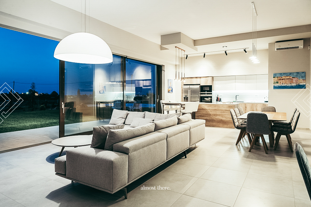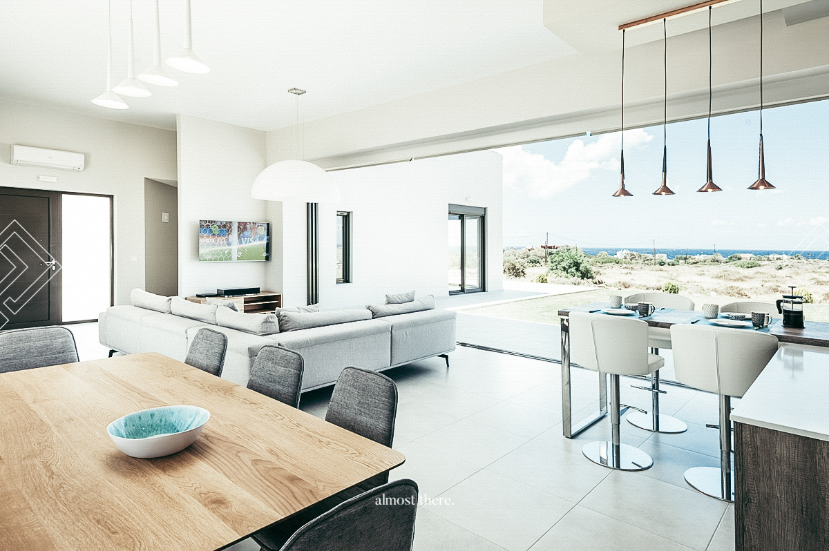 Villa Drew is an exquisite luxury villa located in a serene area of the enchanting Akrotiri peninsula, near Chania, in the Western part of Crete. Designed by award-winning architects, this villa is a brand-new addition to the most sought-after destinations in the area. The villa boasts a stunning view of the mountains, the Bay of Chania, and the Aegean Sea, with beautiful sandy beaches and small coves with turquoise waters just a 5-minute drive away.