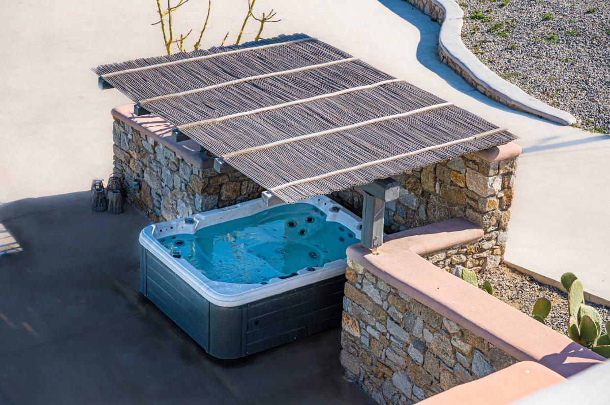 The outdoor terrace is private and fully furnished, providing breathtaking views of the surrounding landscape. You can take a dip in the private pool or relax in the outdoor heated jacuzzi or outdoor shower. The villa also features a stereo system and BBQ, perfect for entertaining and enjoying time with friends and family.