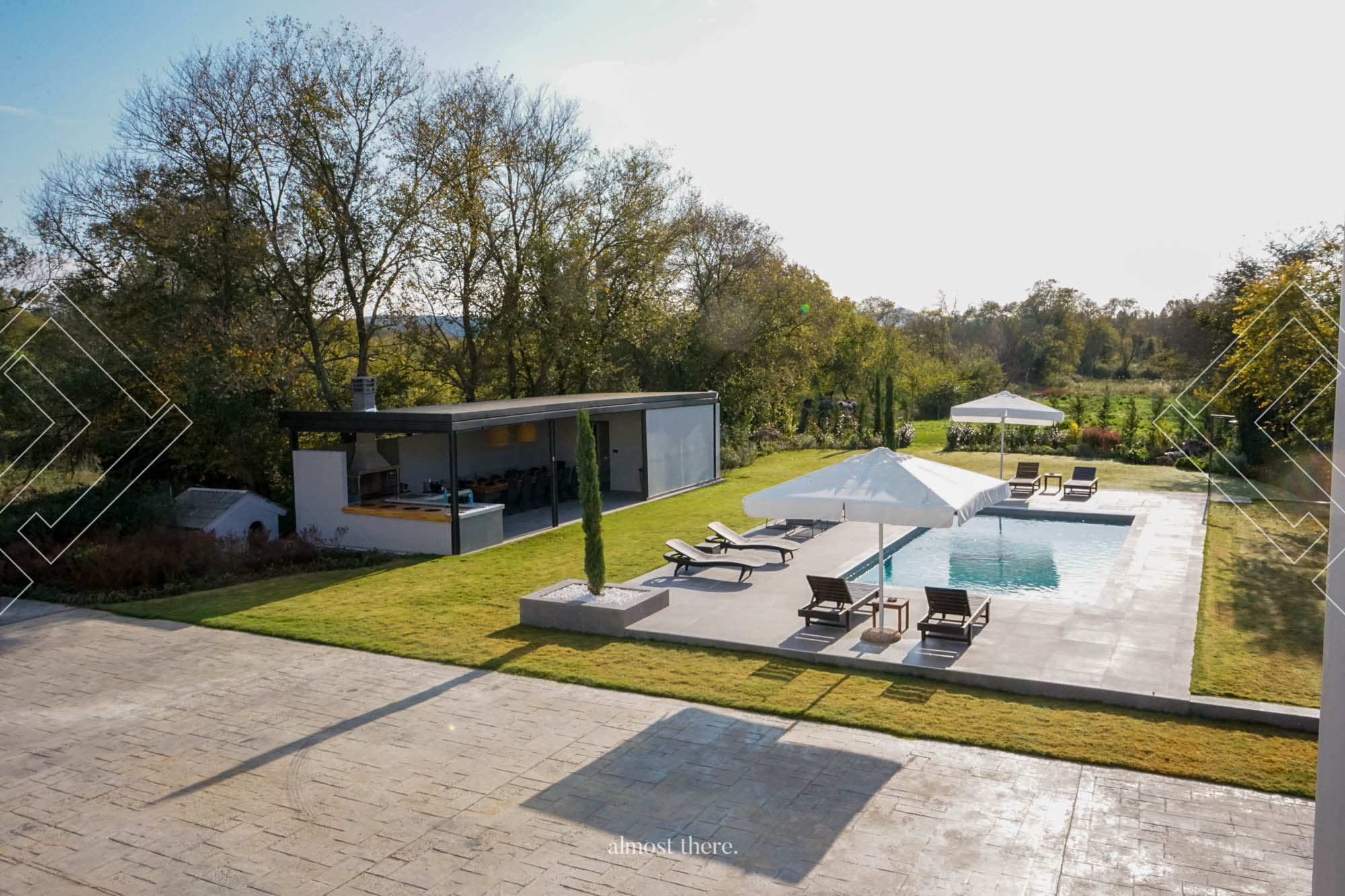 A unique collection of wines and other spirits can also be found in the living room area, which can be consumed upon request, with an extra charge. The second floor of Villa Mount is another apartment on its own. It has a total of 2 master bedrooms, with ensuite bathrooms, a kitchen, and a living room with a small dining area, as well as a balcony, which enjoys a view of the front premises of the house. Connected to the master bedrooms of the second level are two more bedrooms, which are located on the 3rd floor, and each one of them has direct access. Apart from that, there is another spot on the ground level worth speaking of…the amazing bbq area which can host 17 people and offer them a great experience by the outdoor pool. The adults can enjoy good food and wine while the younger ones can play at the outdoor playground located on the front premises of the house. A game of table tennis can also offer you a good laugh and if you are competitive enough, hosting a tournament for as long as you are in the villa sounds great! Last but not least, the fenced villa apart from privacy offers an indoor parking area.