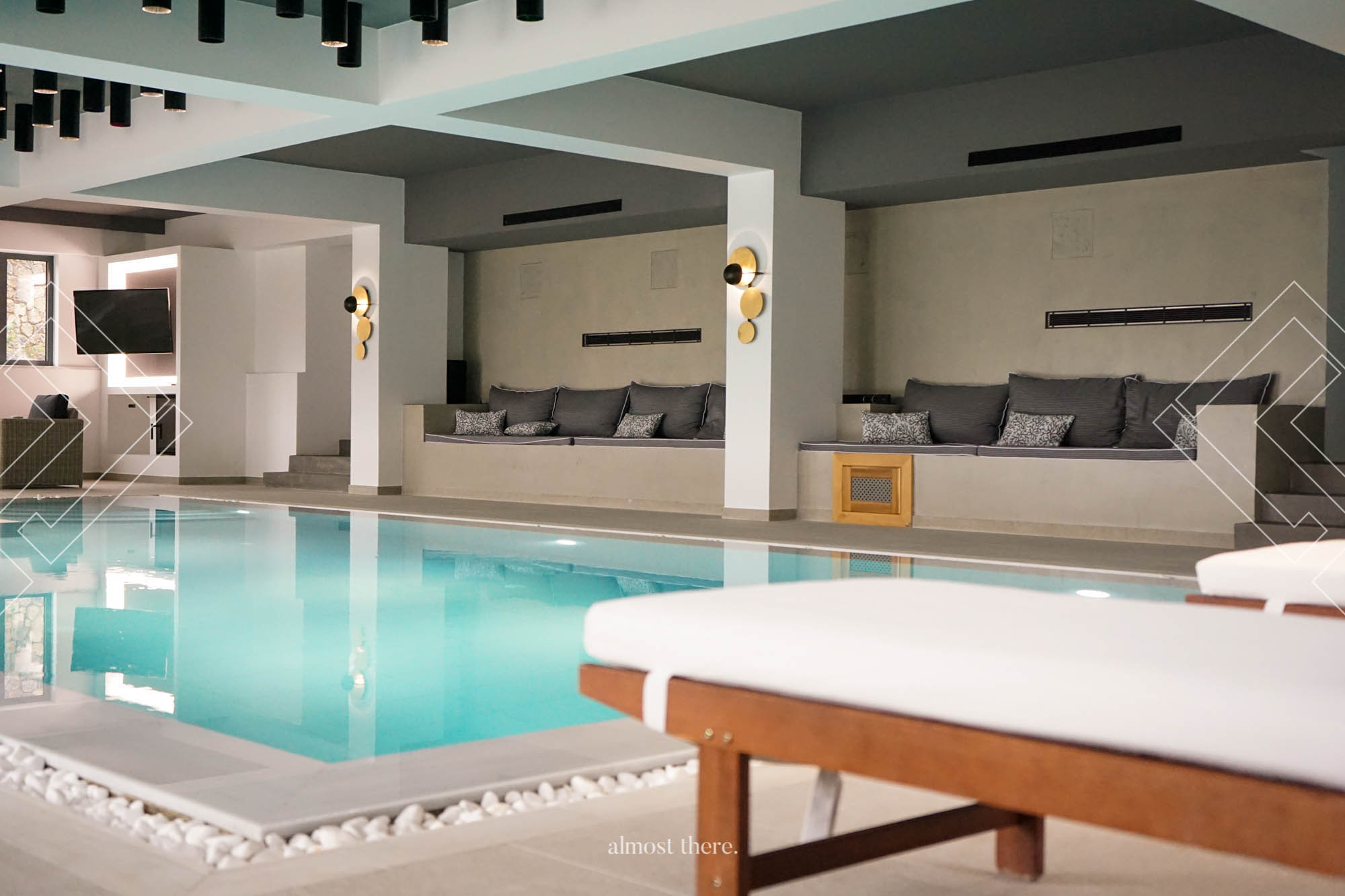 Villa Mount is conveniently located in the suburbs of Corfu, at Kira Chrisikou village, only 10km away from the town center, easily accessible by the main road, and not far away from the beautiful coast of Kontokali. As a unique piece of architecture, Villa Mount will let you embrace luxury living, either by spending your time swimming in one of its pools or by enjoying the jacuzzi, sauna, or bbq area. What was breathtaking for us, is the indoor swimming pool which we are certain, will compensate you with great moments of joy, happiness, and superior luxury. What was breathtaking for us was the love that the owner has put into this property which gives you a really good sense of Greek culture and hospitality.
