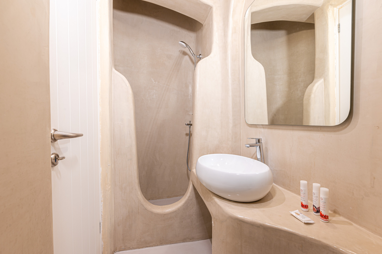 Step out onto the fully furnished private terrace and enjoy the stunning panoramic views or take a dip in the infinity pool that seems to blend seamlessly into the endless sea beyond. Inside, the villa is equipped with a fully functional kitchen, dining area, and a cozy living area with two built-in couches that can accommodate two additional guests. French doors lead out to the patio and pool area, creating a harmonious indoor-outdoor living space that’s perfect for hosting.