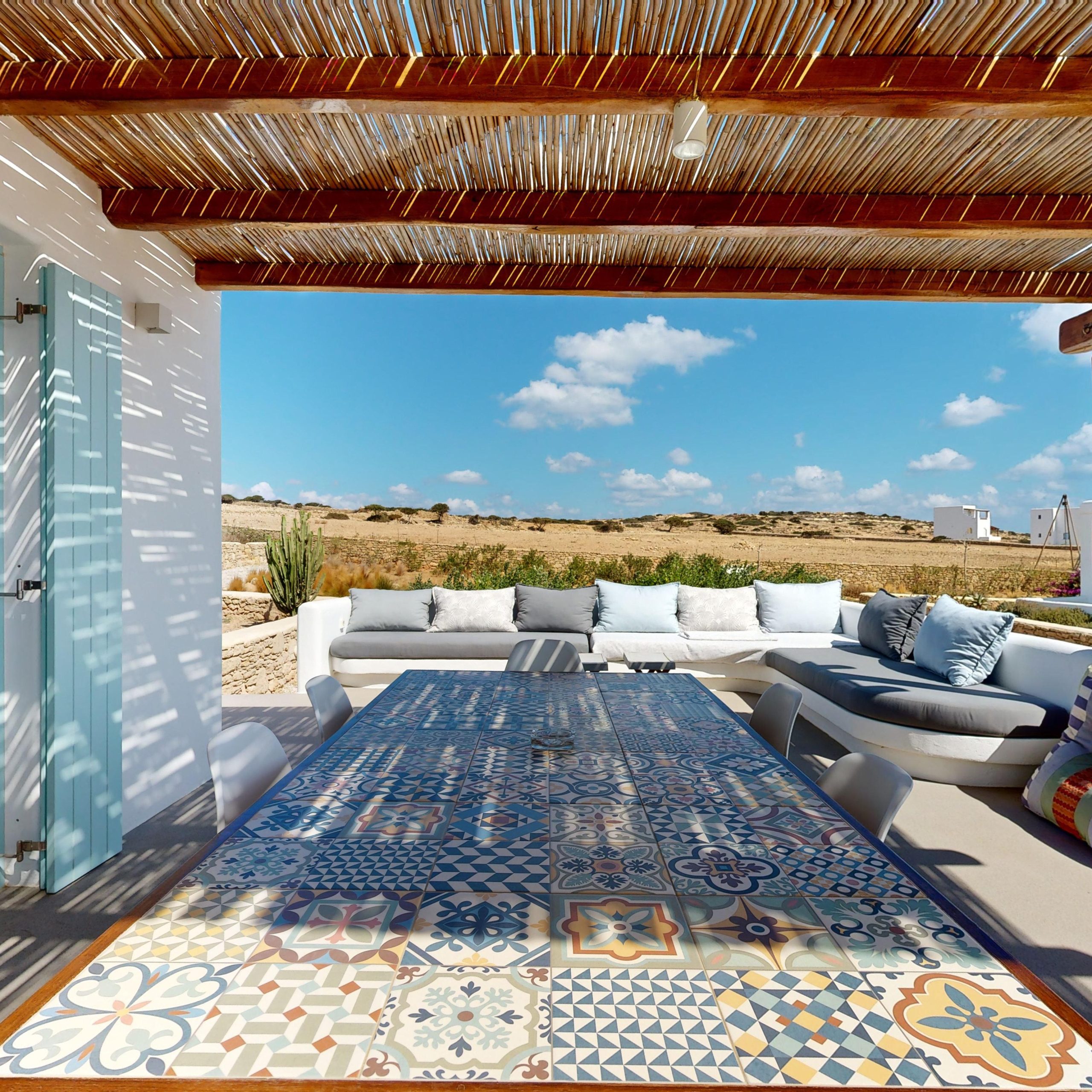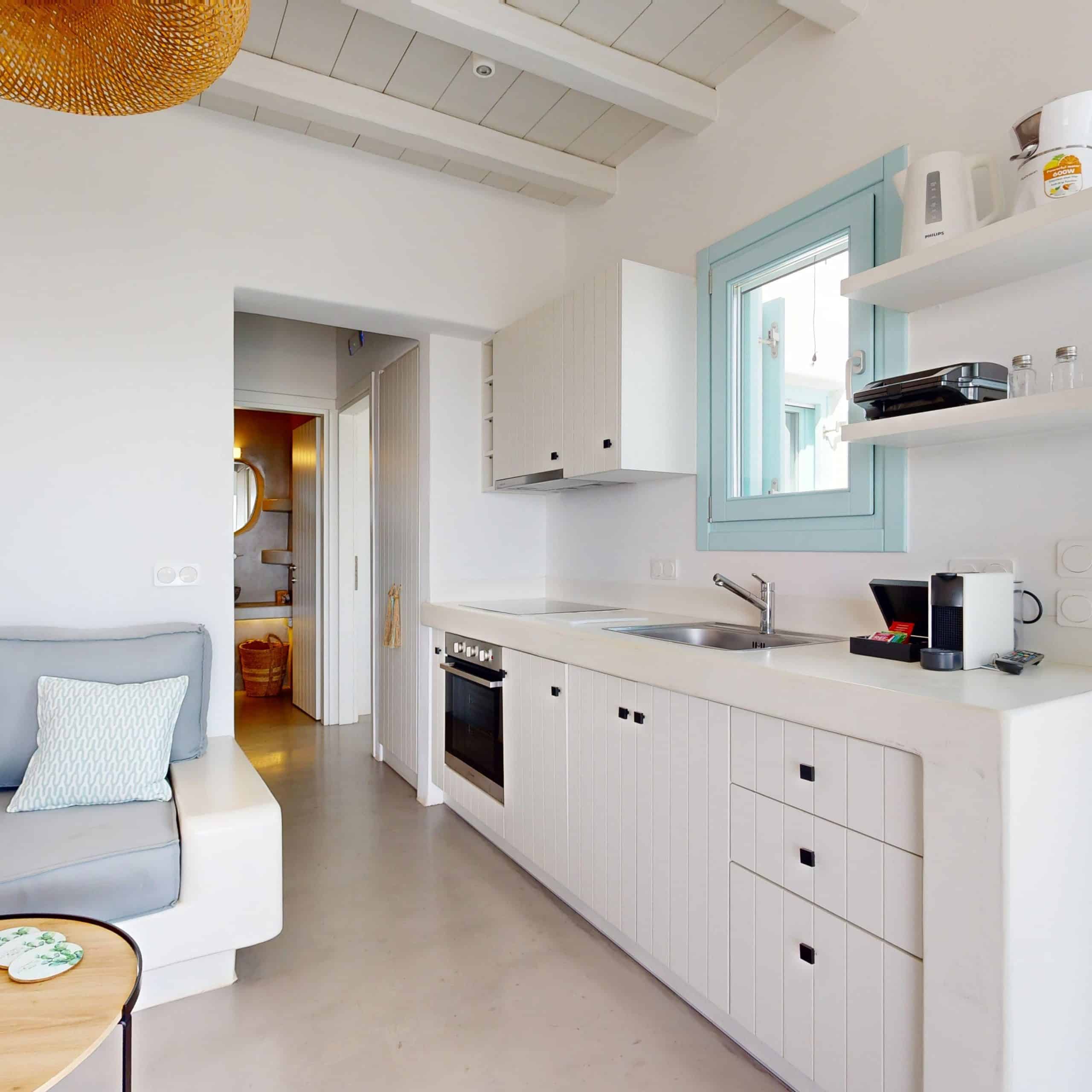 action or later. Please see Debugging in WordPress for more information. (This message was added in version 6.7.0.) in /var/www/vhosts/thevivestia.com/staging.thevivestia.com/wp-includes/functions.php on line 6121This villa comfortably hosts 4 + 2 adults across two elegant floors, embodying the charm of a luxurious island retreat. On the upper floor, you’ll find a fully equipped kitchen with all the amenities needed to prepare breakfast, lunch, or dinner, along with a spacious living room featuring two large single-bed couches that can accommodate two additional guests. It’s a perfect space to unwind, watch TV, or savor the breathtaking views. This floor also includes a bedroom with a king-size bed and a bathroom.